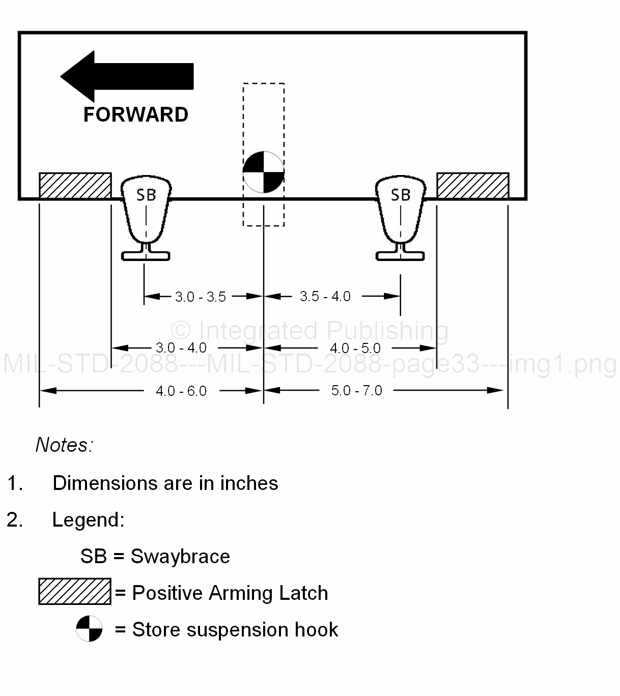 FIGURE 4. Single vertical support spacing Type III, bomb rack unit (BRU)